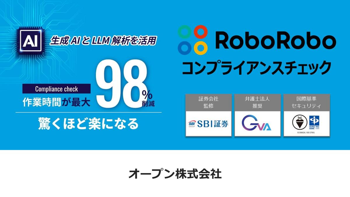 RoboRoboコンプライアンスチェックを導入したことで、企業名を一括登録し、ボタン一つで検索・判定まで行えるようになり、業務時間が大幅に短縮されました。AIによるリスク判定や記事の要約機能も精度が高く、重要な情報を見落とす心配が減りました。