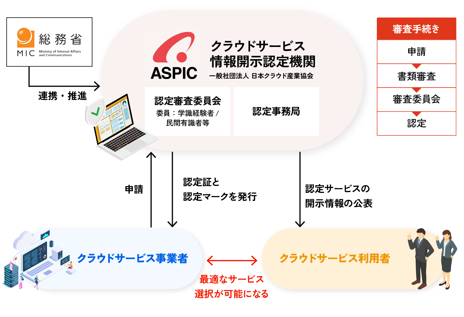 この制度は、クラウドサービスの利用を考えている企業や地方公共団体などが、事業者やサービスを比較、評価、選択する際に必要な「安全・信頼性の情報開示基準を満たしているサービス」を認定するものです。