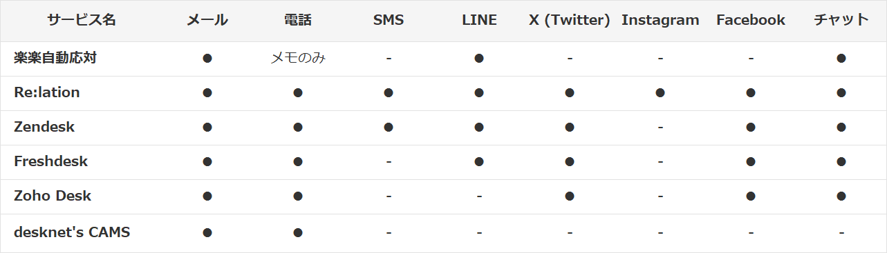チャネルは広ければよいというものではありません。重要なのは、自社がどのような経路(チャネル)で問い合わせを受けているかを把握し、それにあったサービスを選ぶことです。以下、それぞれのシステムのタイプについて、該当するサービスやポイントを記載しています。サービス選びの参考にしてください。