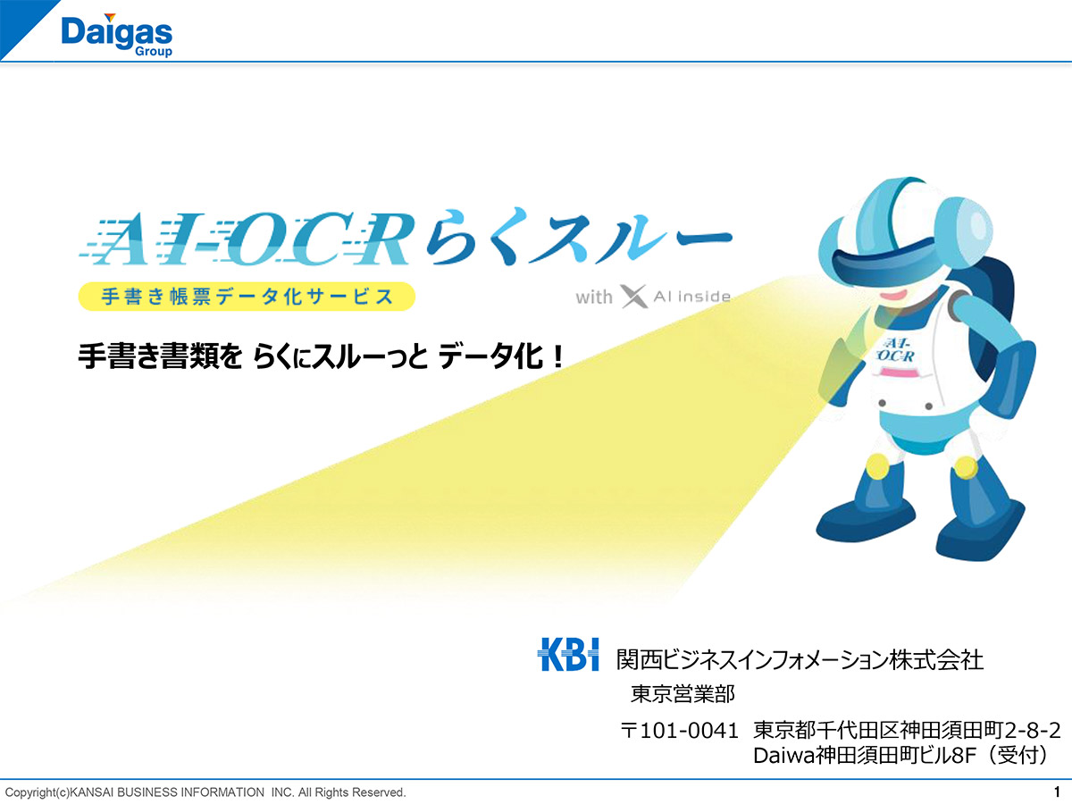 AI-OCRらくスルーは、人工知能と光学文字認識(OCR)により手書き文字の書類やスキャン画像からの文字情報をテキストデータにするツールです。