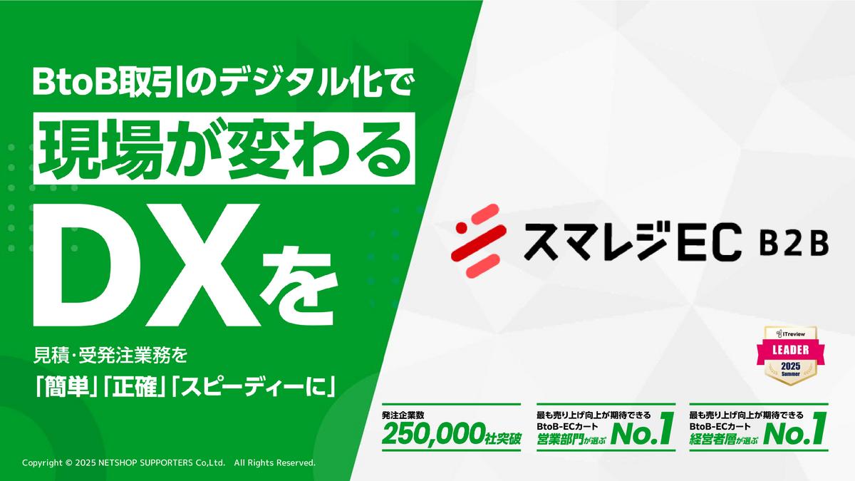 スマレジEC・B2Bは、法人間の受発注業務をデジタル化し、業務効率化から販路拡大・売上向上まで支援するBtoB-EC・Web受発注システムです。買い手企業導入社数は15万社を超え、幅広い業種・規模の企業で採用されています。