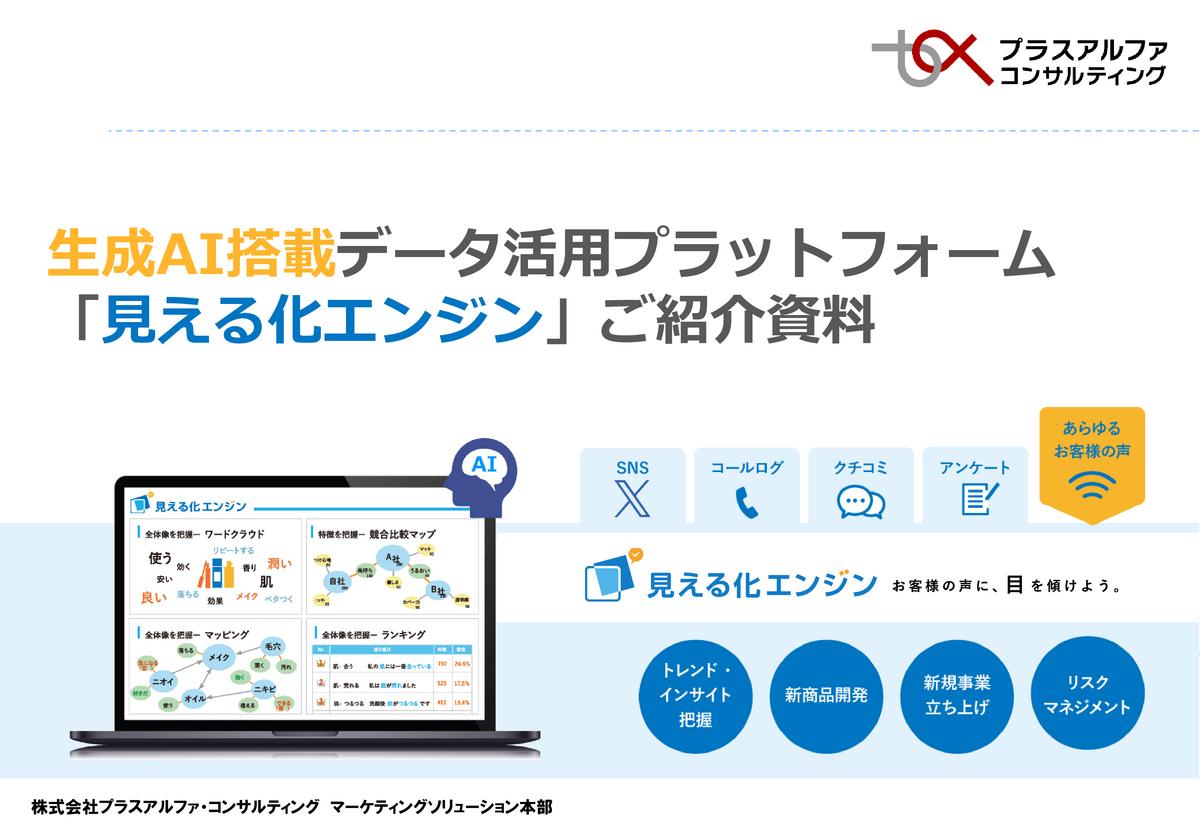 見える化エンジンは、生成AI×SaaSで、顧客から寄せられる声やSNS・口コミなど、社内外に溢れる膨大なテキスト・音声データを価値ある情報・活用できる情報へと転換する「生成AIデータ活用プラットフォーム」です。