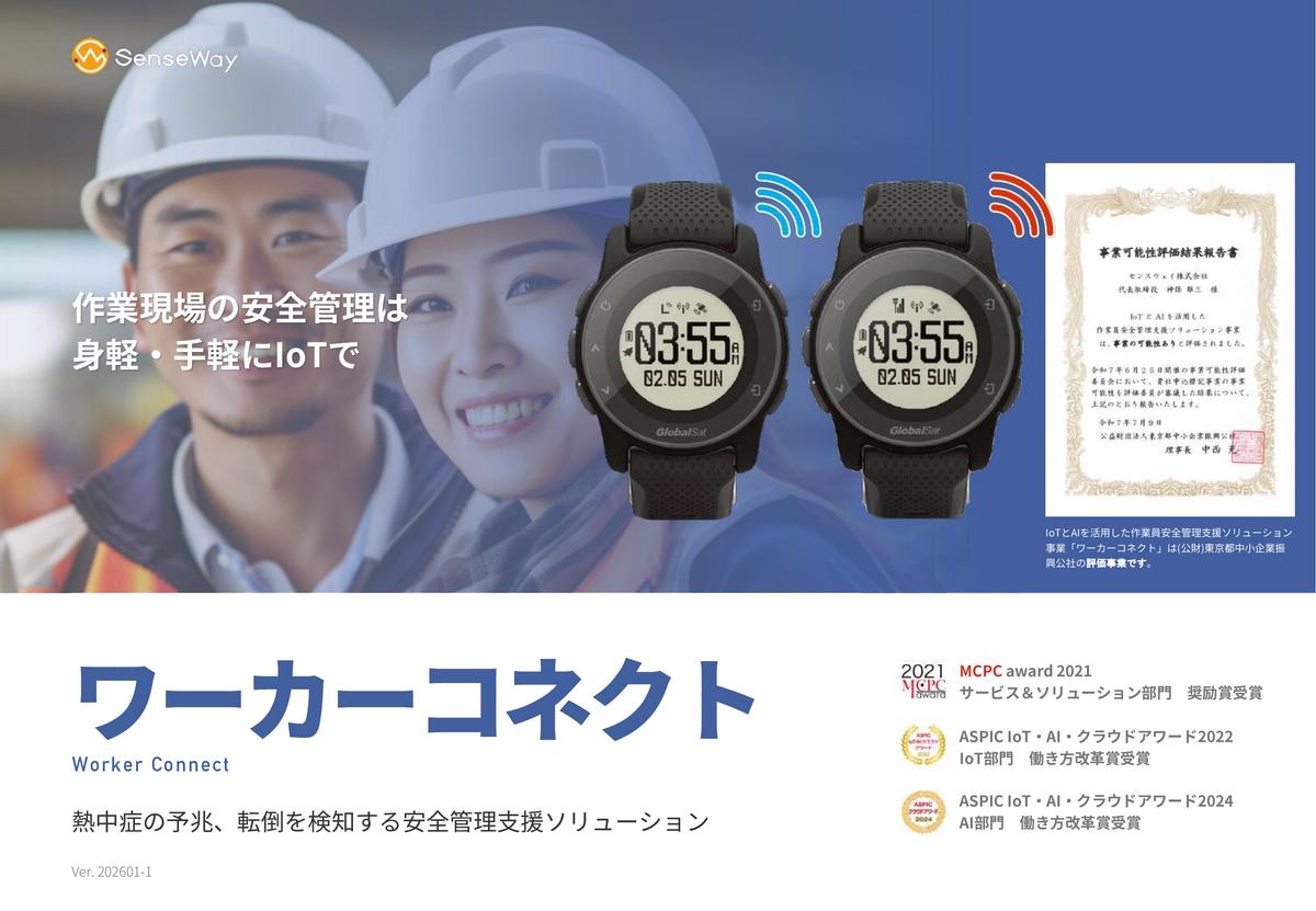 ワーカーコネクトは、工場や建設現場での熱中症、転倒、夜間や休日における一人作業の異常を検知する安全管理ソリューションです。