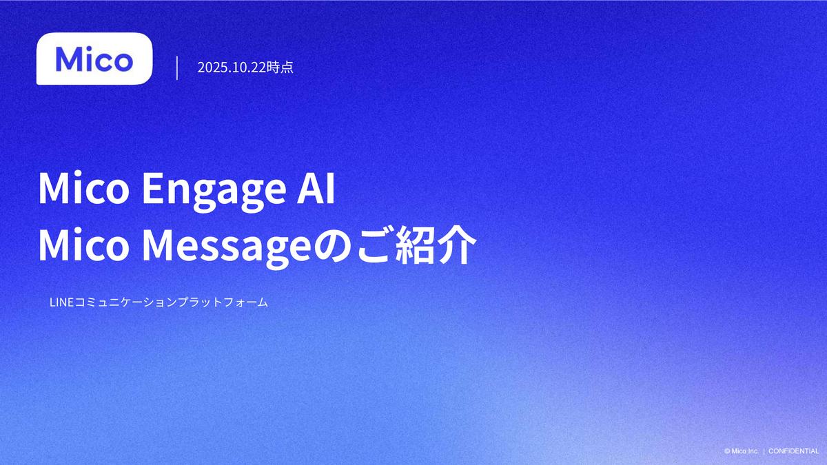 Mico Engage AI(ミコ エンゲージ AI)は、LINE公式アカウントを活用し、顧客一人ひとりの属性や趣味嗜好などに基づいた配信・ナーチャリングを実現するLINEマーケティングサービスです。