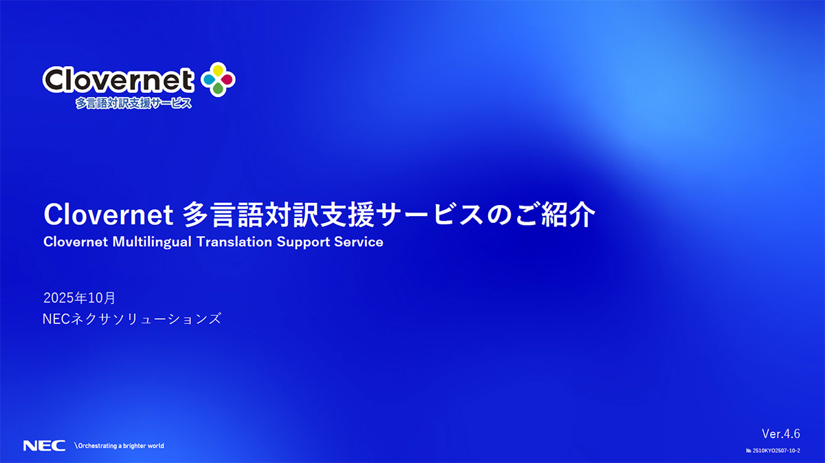 Clovernet多言語対訳支援サービスは、使用言語が異なる会話の音声をリアルタイムでそれぞれの言語に翻訳するサービスです。