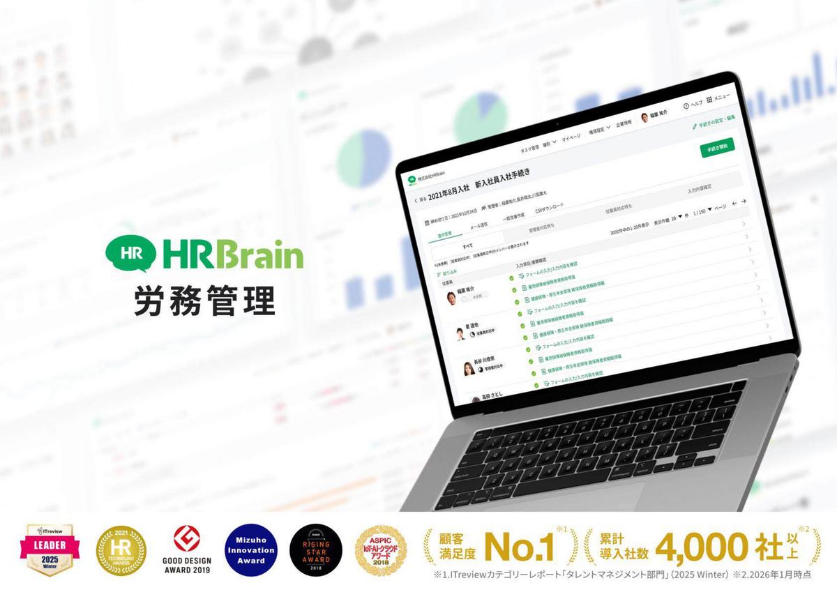 HRBrain労務管理は、入退社手続きや年末調整で発生する業務をペーパーレス化し、人事労務業務の効率化を実現する労務管理クラウドです。
