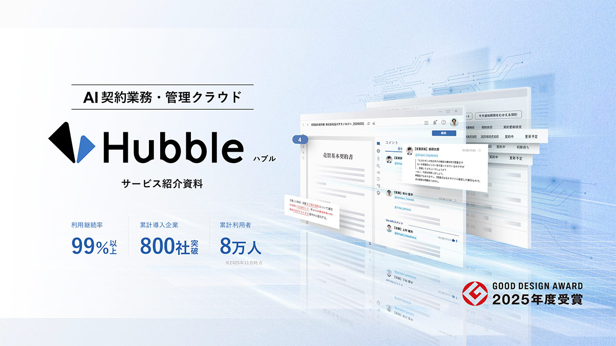 Hubbleは、迅速でミスのない業務フローを実現する契約書管理クラウドサービスです。