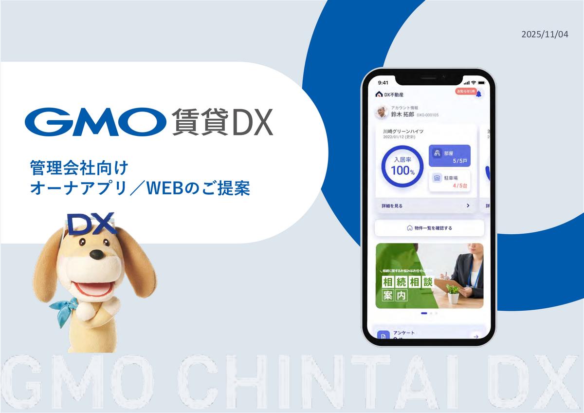 GMO賃貸DXオーナーアプリは、収支報告書や巡回点検報告書、見積書、契約書の郵送のやり取りなど、オーナーとのコミュニケーションにまつわる課題を改善する不動産会社向けのオーナーアプリです。GMOインターネットグループ会社であるGMO ReTechが提供しており、様々な不動産管理会社で導入されています。