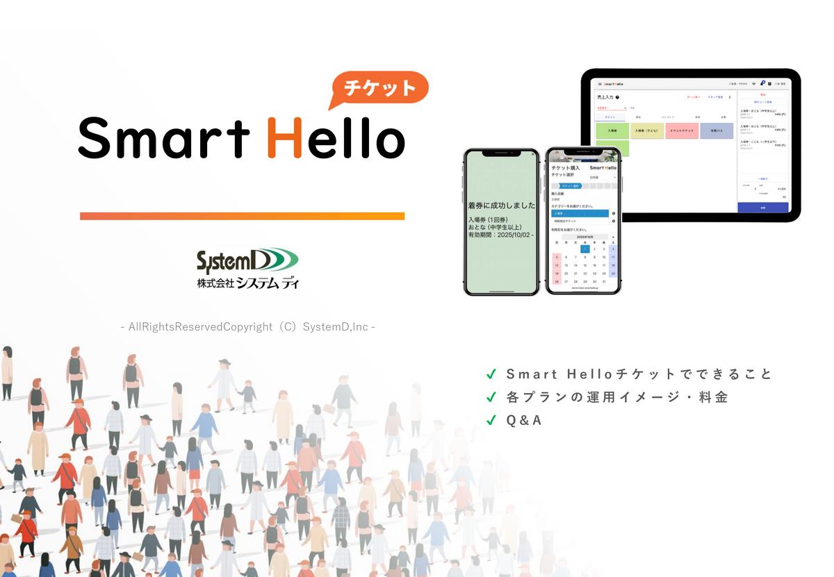 Smart Helloチケットは、遊園地、動物園、水族館、美術館、博物館などの集客施設向けのクラウド型チケット管理システムです。月額30,000円~の低コストで導入することができます。