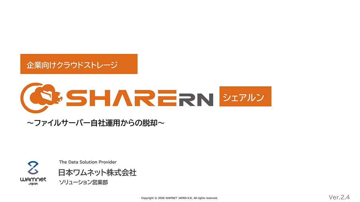 SHARERNを手掛けるのは、20年以上にわたって企業向けファイル転送サービス「GigaCC」を提供してきた日本ワムネット株式会社。上場企業や金融機関を含む、厳しいセキュリティ基準を持つ企業を主な取引先として長年信頼・実績を培ってきました。大切な自社データの預け先として信頼でき、安心して運用できます。