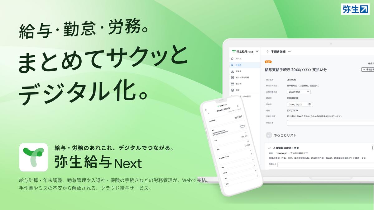 弥生給与 Nextは、老舗ソフトウェアベンダーが提供する、従業員規模300名以下の企業向けクラウド給与・勤怠・労務ソフトです。