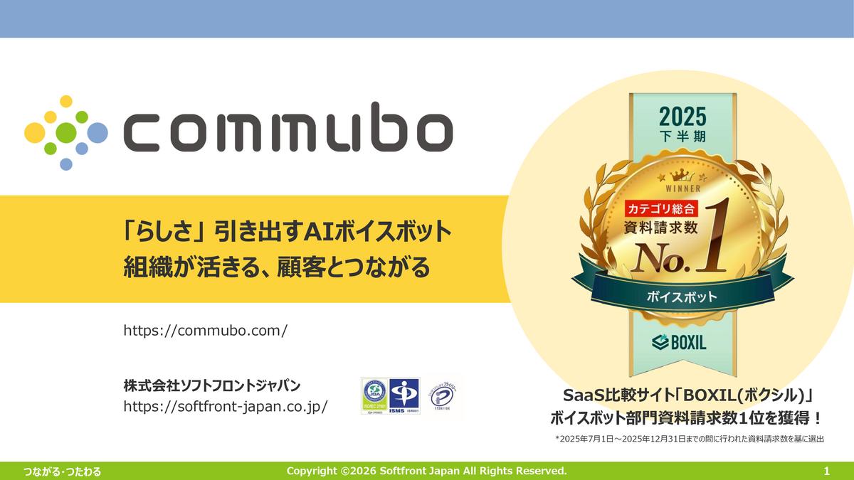 commubo(コミュボ)は、業務の電話応対や一斉架電を社員に代わって行うボイスボットです。
