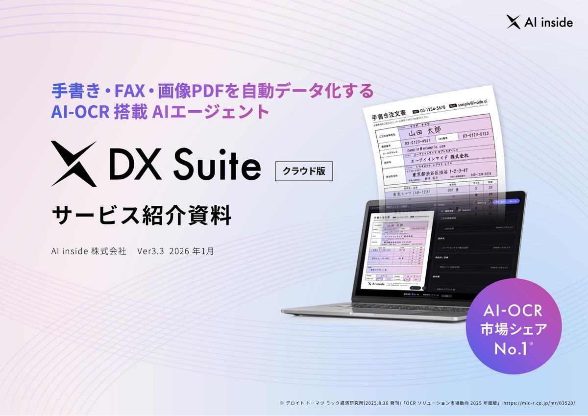 「DX Suite」は、データ入力業務を自動化するAIエージェント搭載のAI-OCR サービスです。
