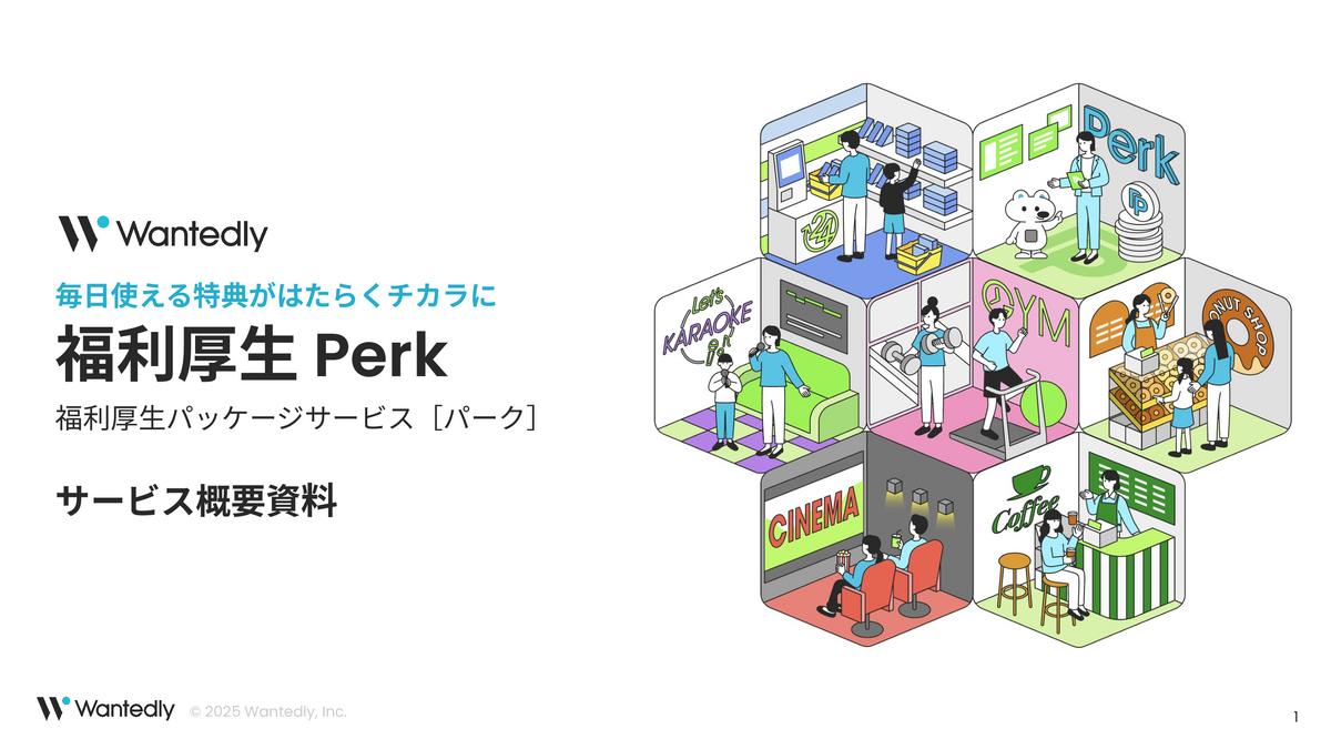 Perk(パーク)は、ビジネスSNS「Wantedly」を手がけるウォンテッドリーが提供する、福利厚生パッケージサービスです。
