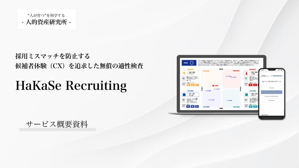 HaKaSe Recruitingは、期間の制約なく利用できる無料プランを備えた、応募者の個性やチームとの相性を把握できるWeb適性検査です。「ビッグファイブ理論」や「交流分析」に基づいた独自の質問設計を採用し、パーソナリティを60タイプに分類。応募者の強みや行動パターン、発揮しやすいビジネススキルなどを分かりやすく可視化します。