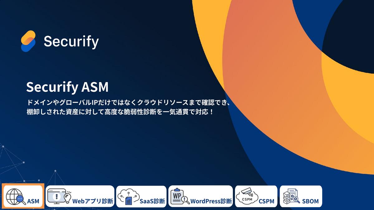 Securify ASMは、外部公開資産の把握・管理から脆弱性診断までワンストップで実施できるASMツールです。