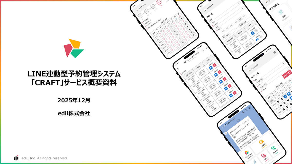 CRAFTは、予約管理やシフト管理をスマホ一台で完結できる店舗・スクール向けLINE予約管理システムです。LINEのシステム基盤を活用することで、月額980円~の業界最安水準でサービスを提供しています。