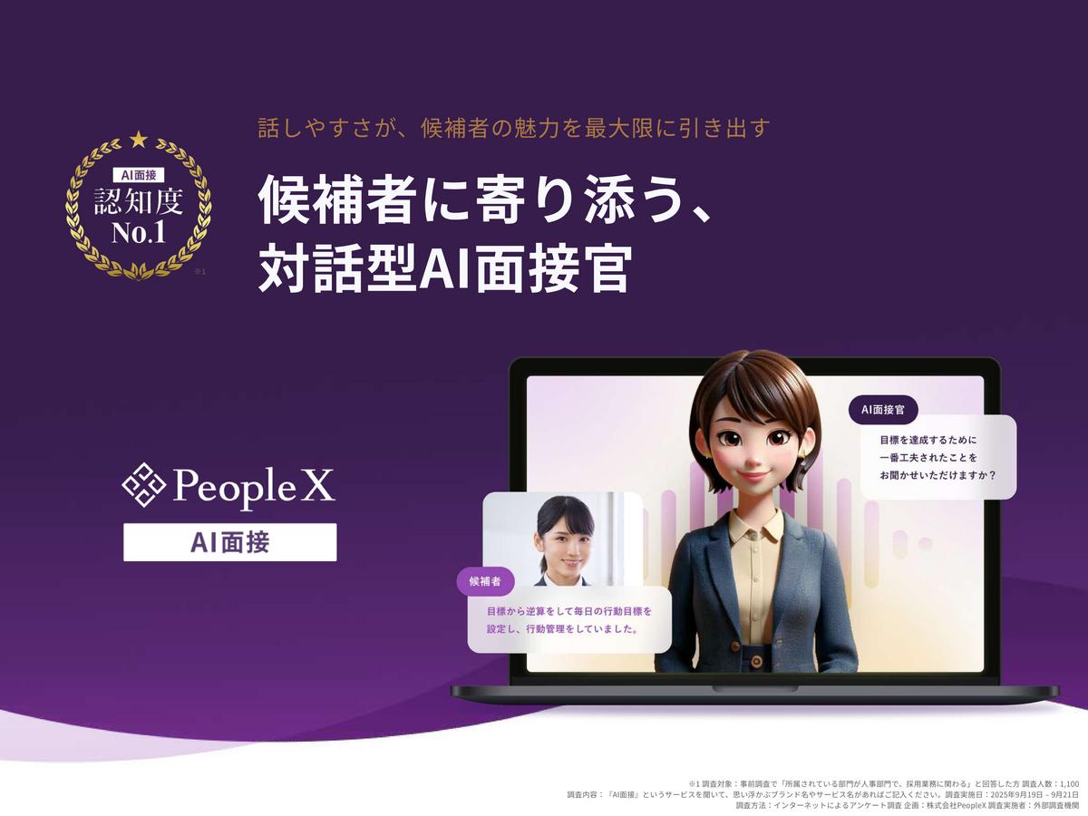 PeopleX AI面接は、デジタルヒューマンが対話形式で面談を行うAI面接サービスです。