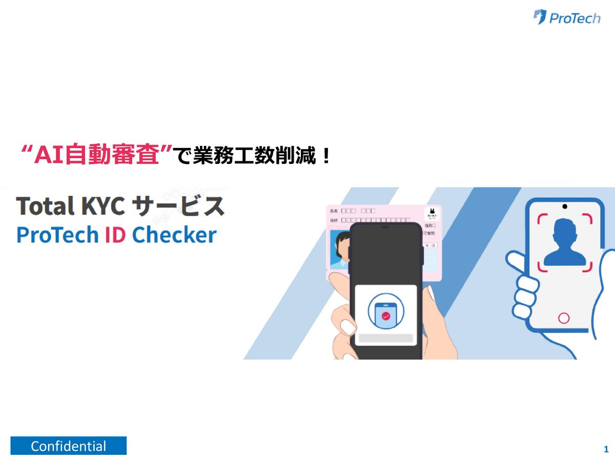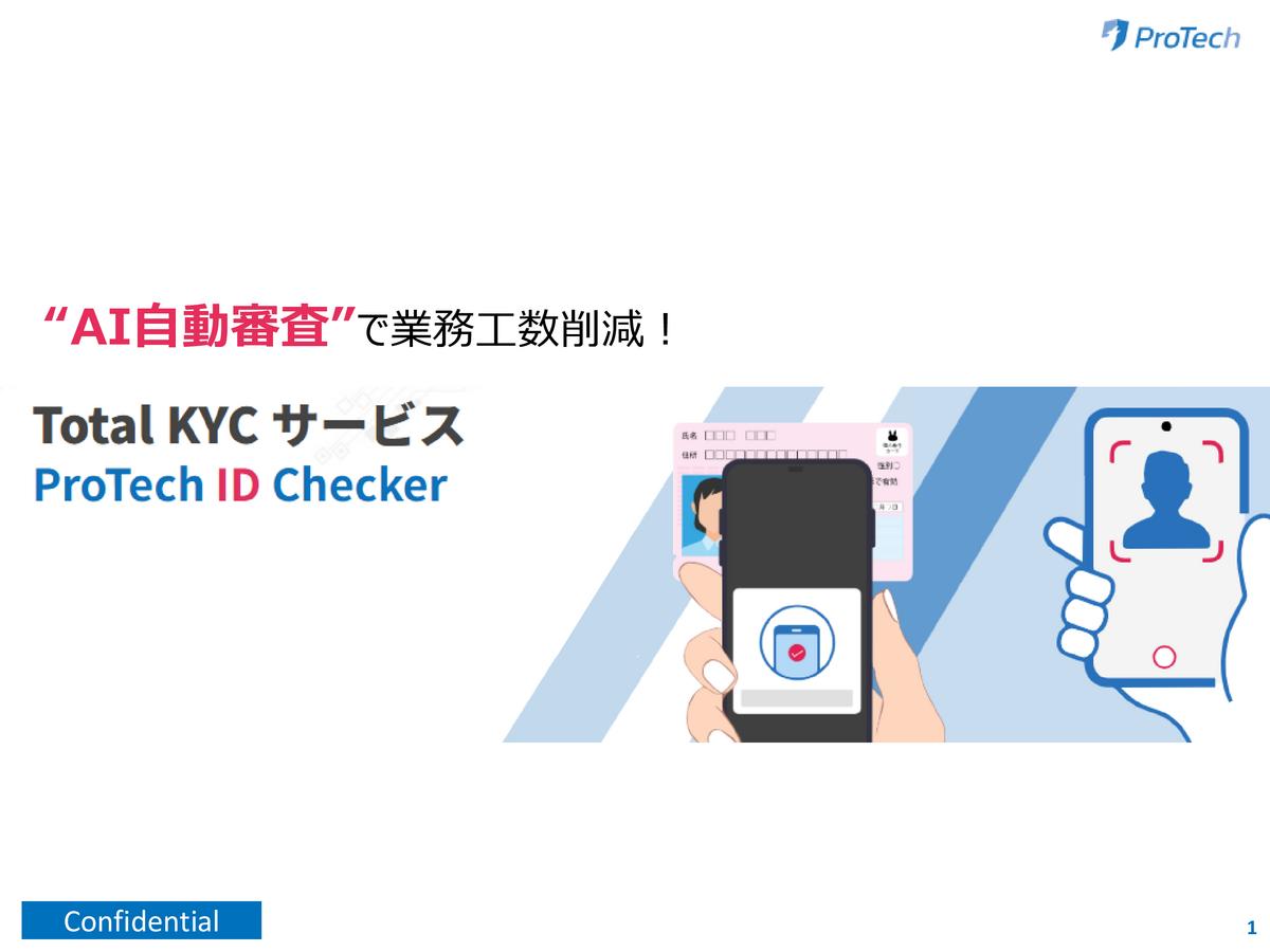 ProTech ID Checkerは、低コストで導入がカンタンなオンライン本人確認(eKYC)サービスです。 AIを活用して本人確認業務を自動化し、目視で行う本人確認作業工数を削減できる点もポイント。オペレーターによる目視確認作業のアウトソーシングも可能です。