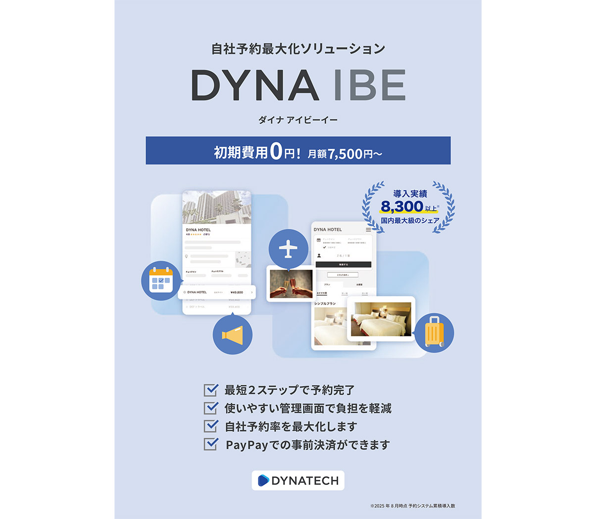 「獲得効率を高め収益の最大化へ」、『DYNA IBE』は自社集客に強い宿泊予約エンジンとして、累計8,300以上※1の宿泊施設での導入実績があります。
