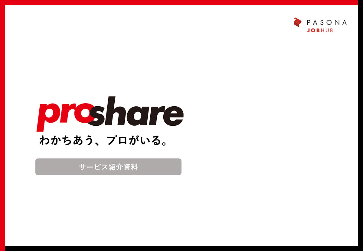 ProShareは、2,500社以上の導入実績を誇るパソナJOB HUBの法人向け顧問コンサルティングサービスです。