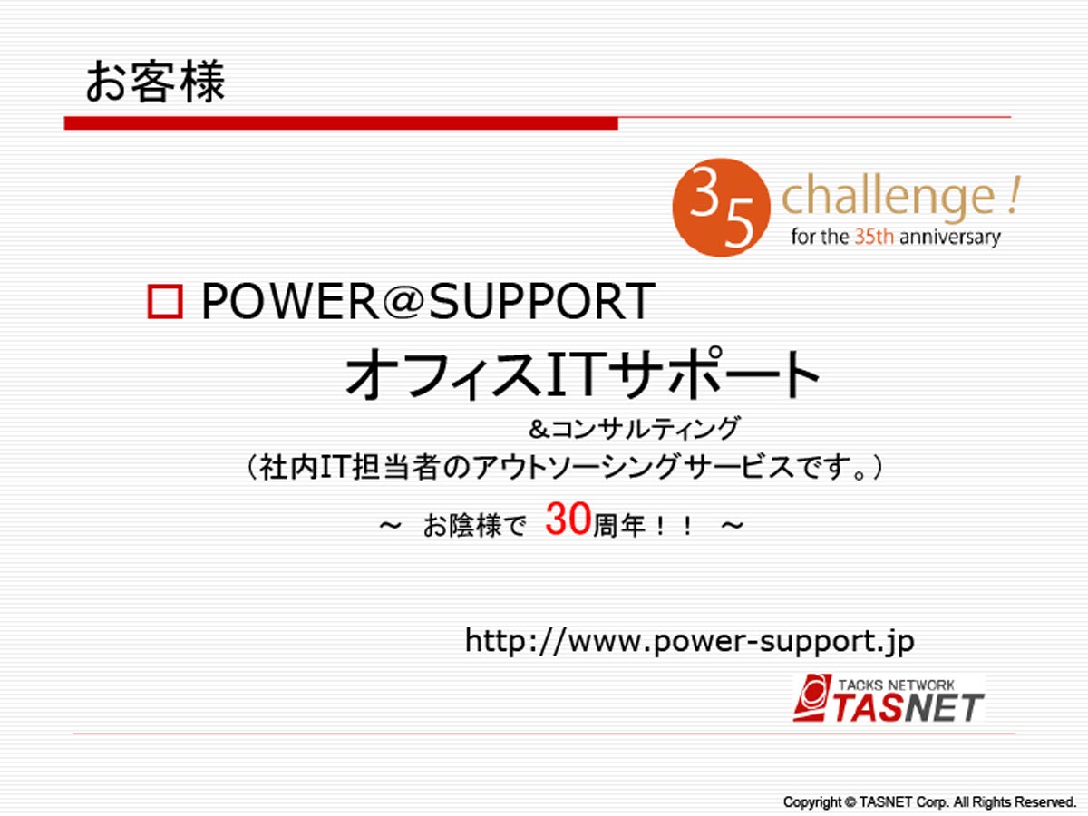 月額2万円台から社内IT体制を丸ごと外注化できるパッケージメニューを提供。タスネットのエンジニアが初回調査を行い、PC・サーバー・ネットワーク環境・クラウド構築を「IT管理台帳」として可視化。課題の洗い出しから改善提案までを一貫して対応します。