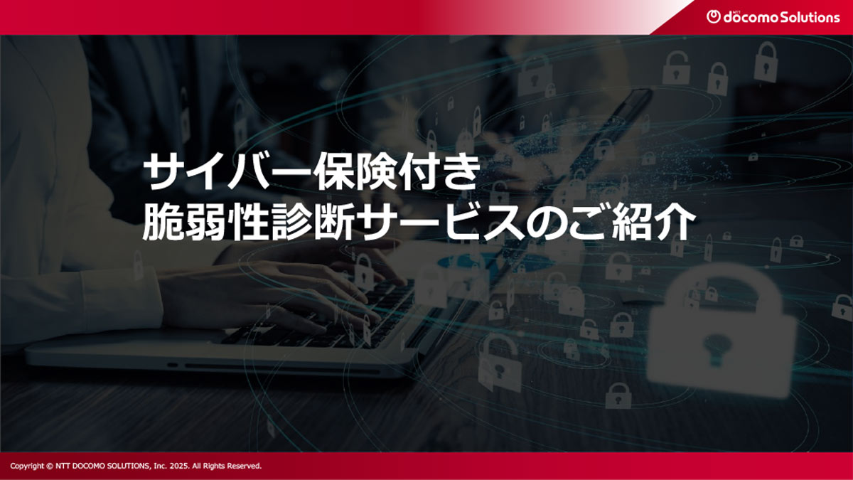 ドコモグループ水準の高品質な脆弱性診断をIPA基準に準拠して実施。的確な報告書を提示し、脆弱性対策後の再診断とサイバー保険の付帯により、不測の事態に備えられます。