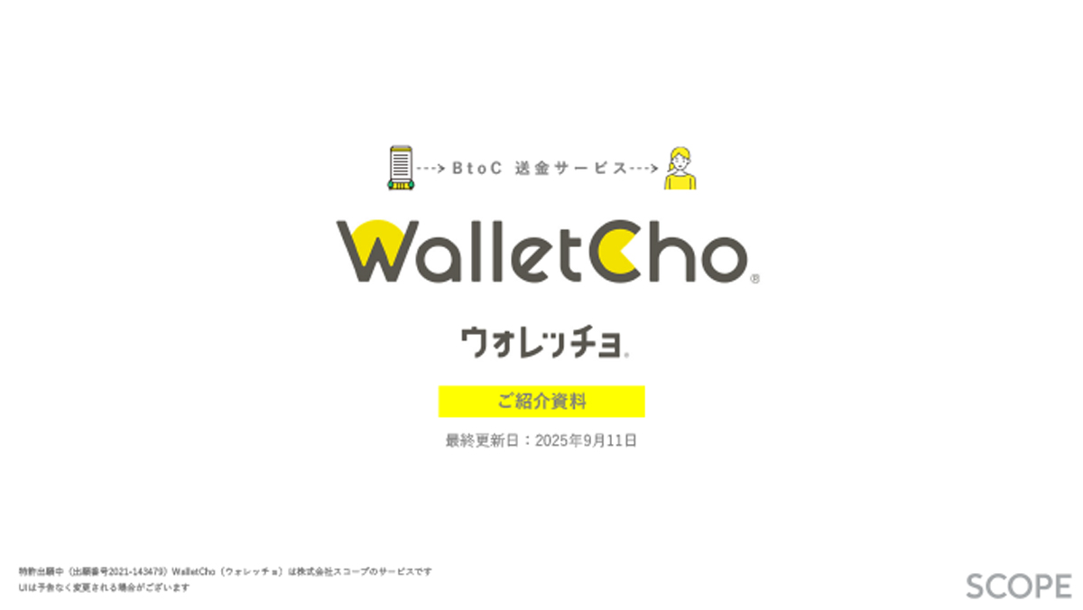 WalletCho(ウォレッチョ)は、URLの配布で簡単にエンドユーザーへ送金できるBtoC送金サービスです。