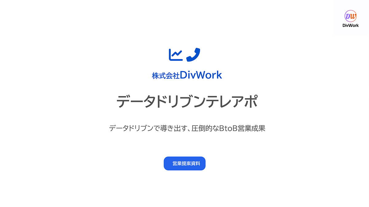 株式会社DivWorkが提供するデータドリブンテレアポは、科学的アプローチとデータ分析を融合した、BtoB新規開拓特化のテレアポ支援サービスです。