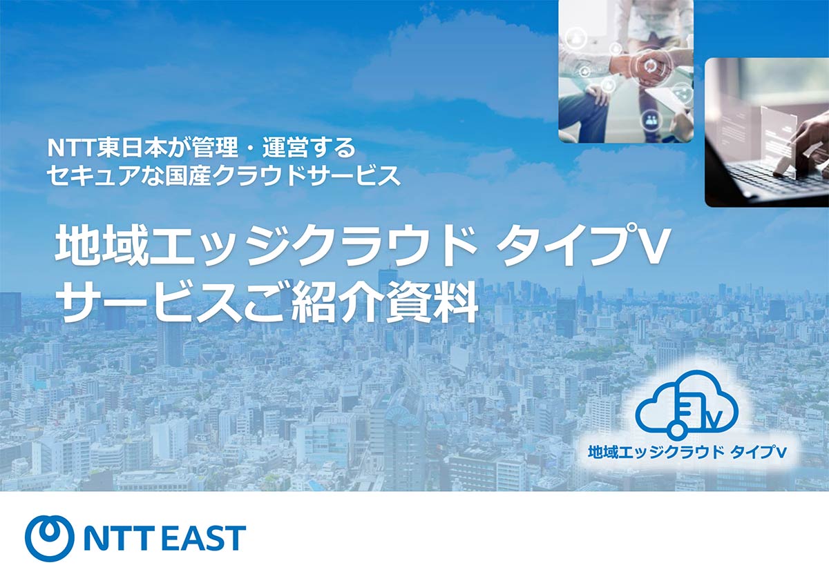 地域エッジクラウド タイプVは、NTT東日本が提供するセキュアな国産クラウドサービスです。仮想化基盤には「VMware by Broadcom」を採用で、業種・分野を問わず幅広い企業での柔軟なクラウド構築・運用を実現。サーバー機器の調達・保守を不要にして、インフラ構築・管理の負担を大幅に軽減します。円建ての月額定額制を採用し、予算の見通しが立てやすいことも特徴です。