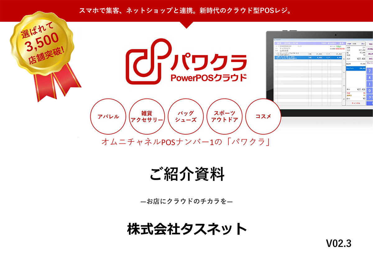 PowerPOSクラウド(通称:パワクラ)は、小売業の現場課題を解決する店舗統合型のクラウドPOSシステムです。実店舗とECサイト、倉庫、本部をつなぎ、複数の販売チャネルを統合できます。販売・在庫・会員情報をリアルタイムで一元管理でき、売上を多くの集計軸で「見える化」し、在庫連携、ポイント共有などを実現。LINEやアプリとの連携による集客機能オプションも提供し、顧客接点の強化とLTV向上も支援します。