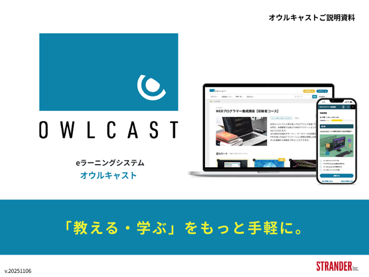 オウルキャストは、オンラインスクールや法人向け研修販売など、「教育ビジネスの収益化」に特化したeラーニングシステムです。