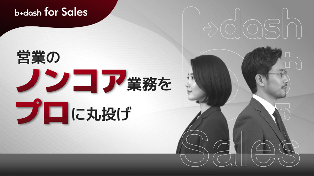 b→dash for Salesは、「受注につながる成功の型」を活用したマーケティング設計・アポ獲得・追客で、再現性のある成果創出を実現するインサイドセールス代行支援サービスです。