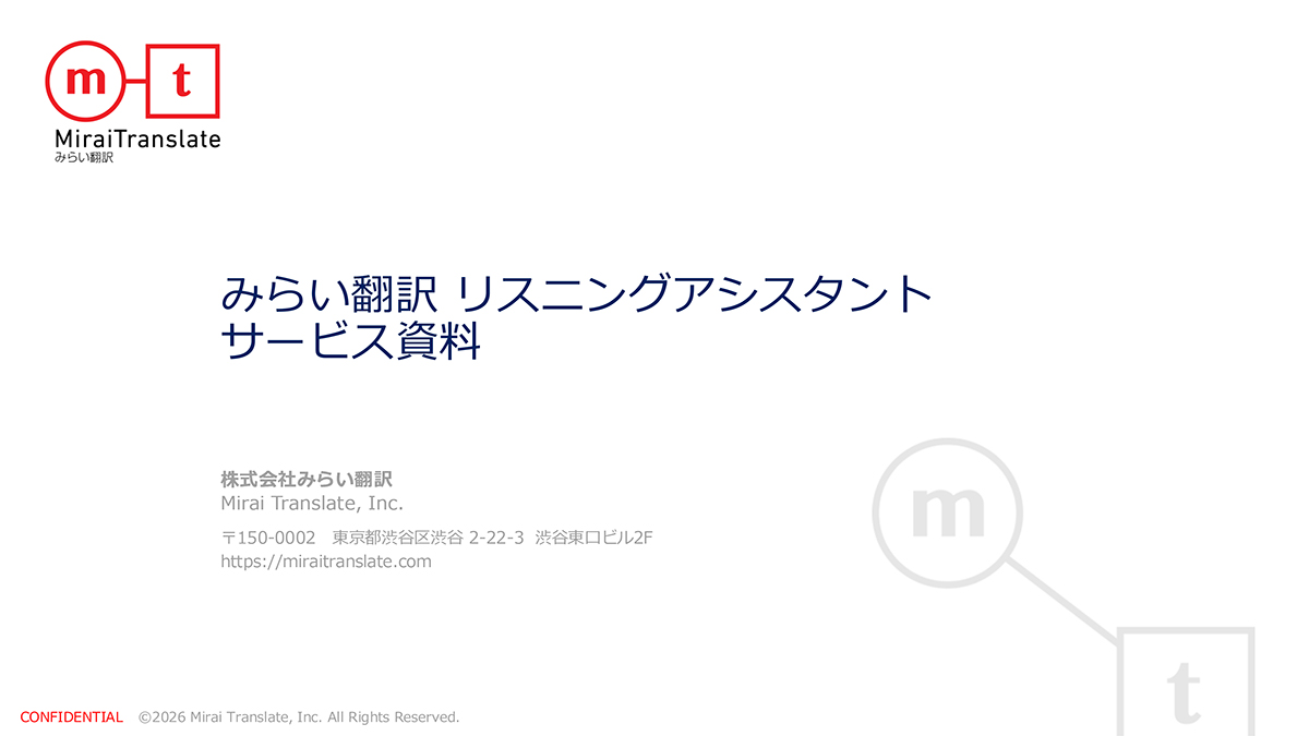 リスニングアシスタントは、外国語をリアルタイムで「書き起こす」「翻訳する」ことに特化したAI会議翻訳ツールです。