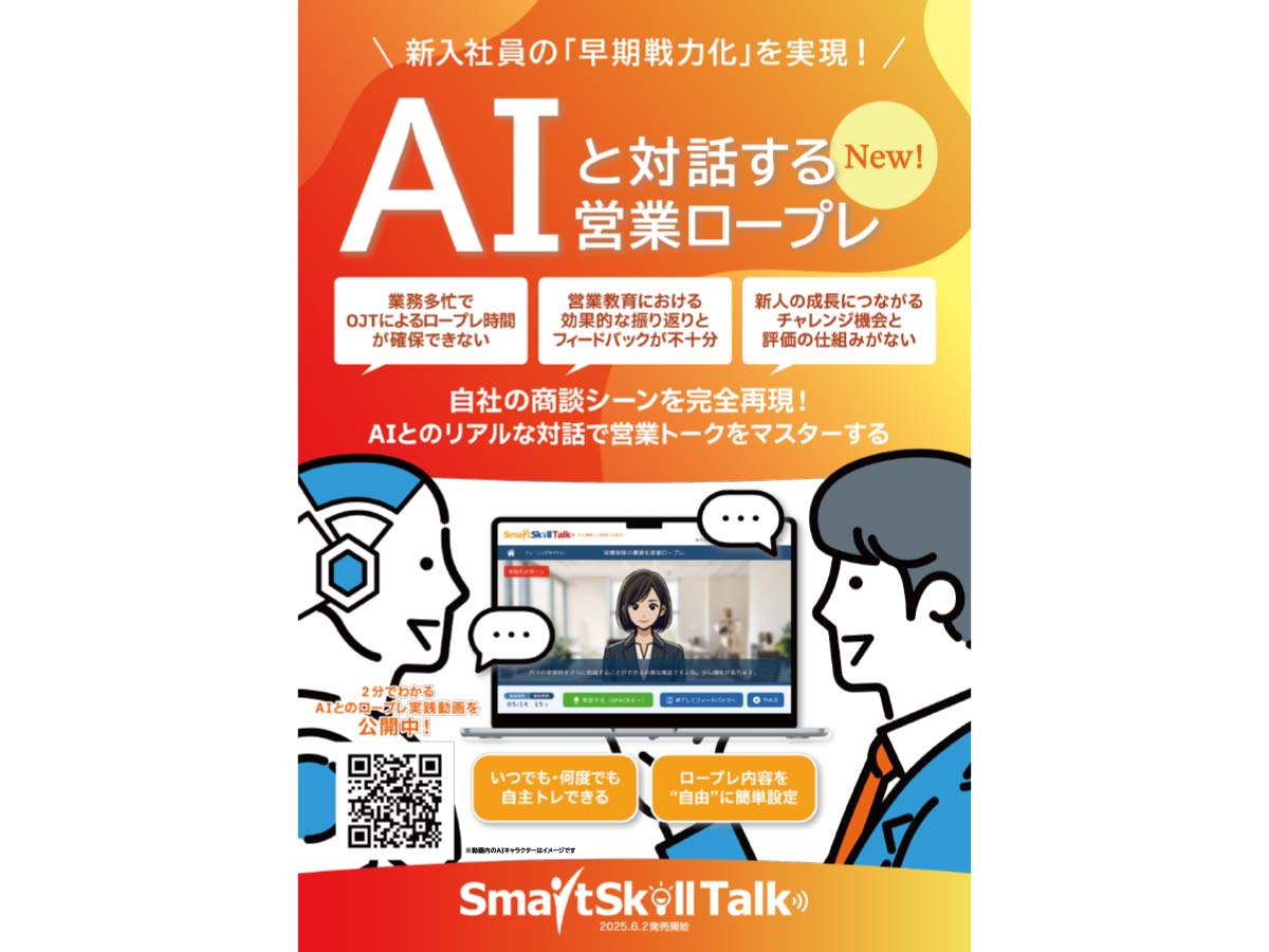 SmartSkill Talkは、AIとの実践的な対話を通じて現場の「即戦力化」を推進する双方向型のAIロールプレイングサービスです。