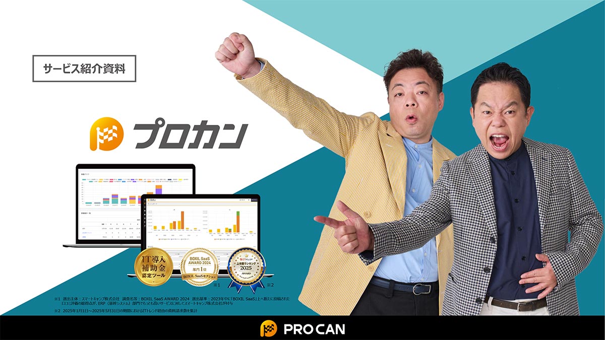 プロカンは、業界ごとのプロジェクトに合わせた特化型パッケージで、案件ごとの利益を可視化するプロジェクト収支管理システムです。