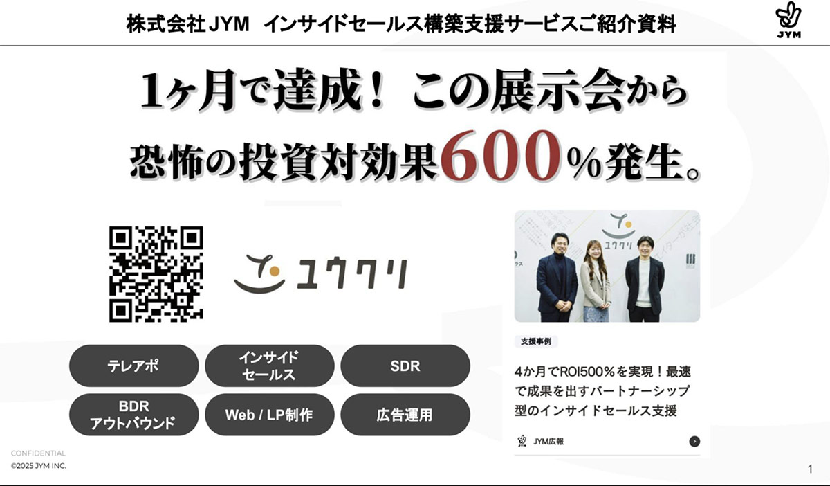 株式会社JYMが提供するインサイドセールス代行支援は、リードジェネレーションから商談獲得、営業活動までを一貫して支援するThe MODEL型の営業構築サービスです。