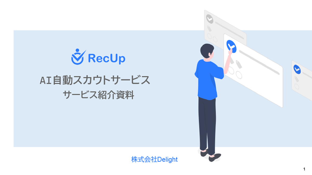 AIスカウトサービス「RecUp(リクアップ)」は、候補者選定~スカウト送信までの自動化と伴走サポートを組み合わせて、スカウト業務を支援するAIサービスです。