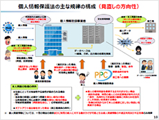 主な検討項目として、@課徴金制度や団体による差止請求制度の導入、A本人関与の在り方(個人の意思による関与と合理的基準による監視のバランス)、B事業者のガバナンス強化、C個人関連情報や顔特徴データなど新たな情報類型への対応、D漏えい時の本人通知の在り方、E子供の個人情報保護、などが挙げられた。